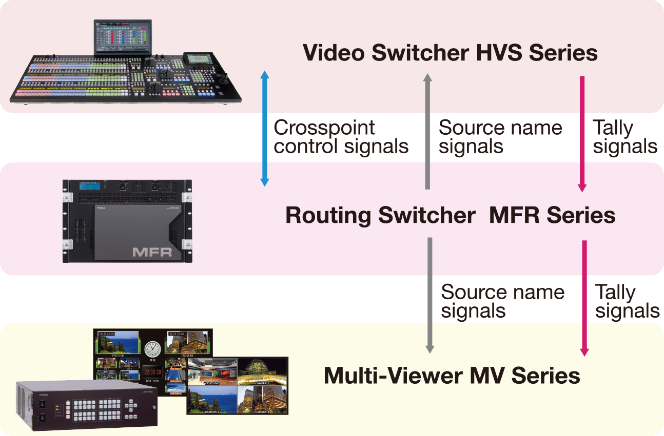 HVS系列的Tally自动发送到MFR系列矩阵和MV系列画面分割器