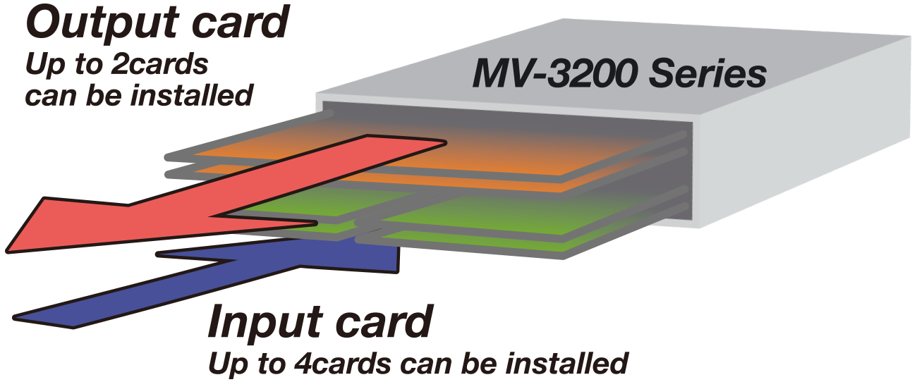 MV-32HSDI 3G-SDI (LEVEL-A), HD-SDI or SD-SDI: 8 inputs MV-32AI Analog composite: 8 inputs MV-32AIL Analog composite: 4 inputs MV-32PCI DVI-I: 3 inputs MV-32AAI Enables analog audio 16 channel input.